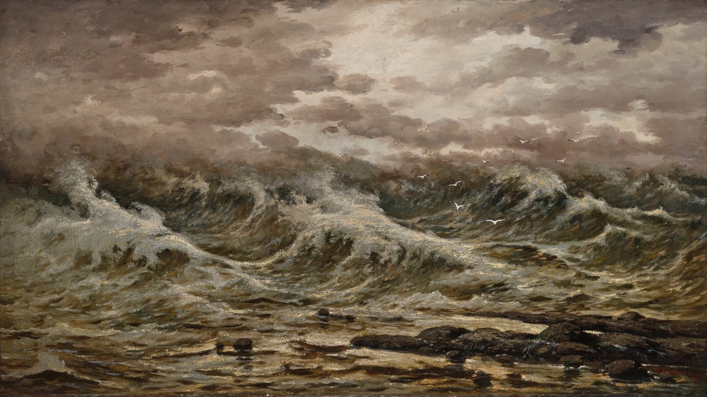Adolf Kaufmann was an Austrian painter working in the late 19th and early 20th centuries, known for his maritime scenes and landscapes. While not as famous as some of his contemporaries, he had a particular talent for capturing water in motion. This painting demonstrates the Romantic tradition's fascination with nature's untamed forces, where the sea becomes both beautiful and threatening. The relatively small scale suggested by the waves and birds gives us a sense of being right there at the water's edge, watching the storm roll in.