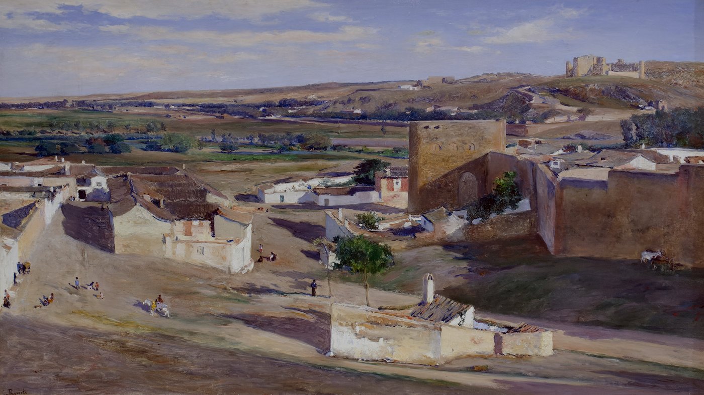 Beruete belonged to a generation of Spanish artists who looked to the landscape tradition while embracing the lighter palette and spontaneous technique of impressionism. The painting's title, "El arrabal de afuera," refers to an outer district or suburb, emphasizing the artist's interest in these transitional spaces between town and countryside. Notice how the composition leads your eye from the foreground settlement up toward the distant hills, where what appears to be a castle or fortress sits on the horizon, connecting the modest present with Spain's storied past.