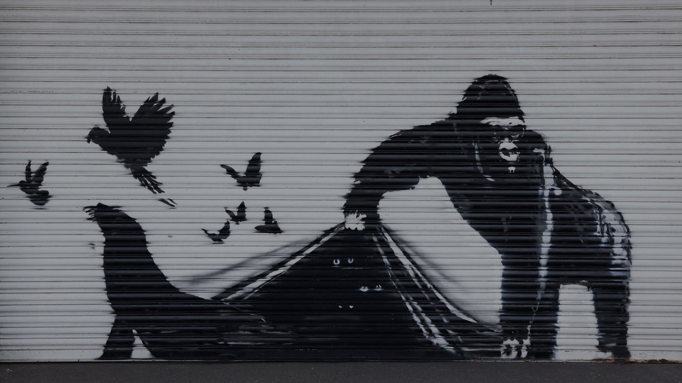 Banksy is known for challenging social and political issues through accessible, often humorous imagery. This work taps into ongoing debates about keeping animals in captivity and whether intelligent creatures like gorillas should be confined for human entertainment. The fact that it's painted on what looks like a shop security shutter adds another layer to the message, transforming an everyday urban feature into something that makes you stop and think. The simple black silhouettes are deliberately rough and immediate, which is part of street art's charm and urgency.