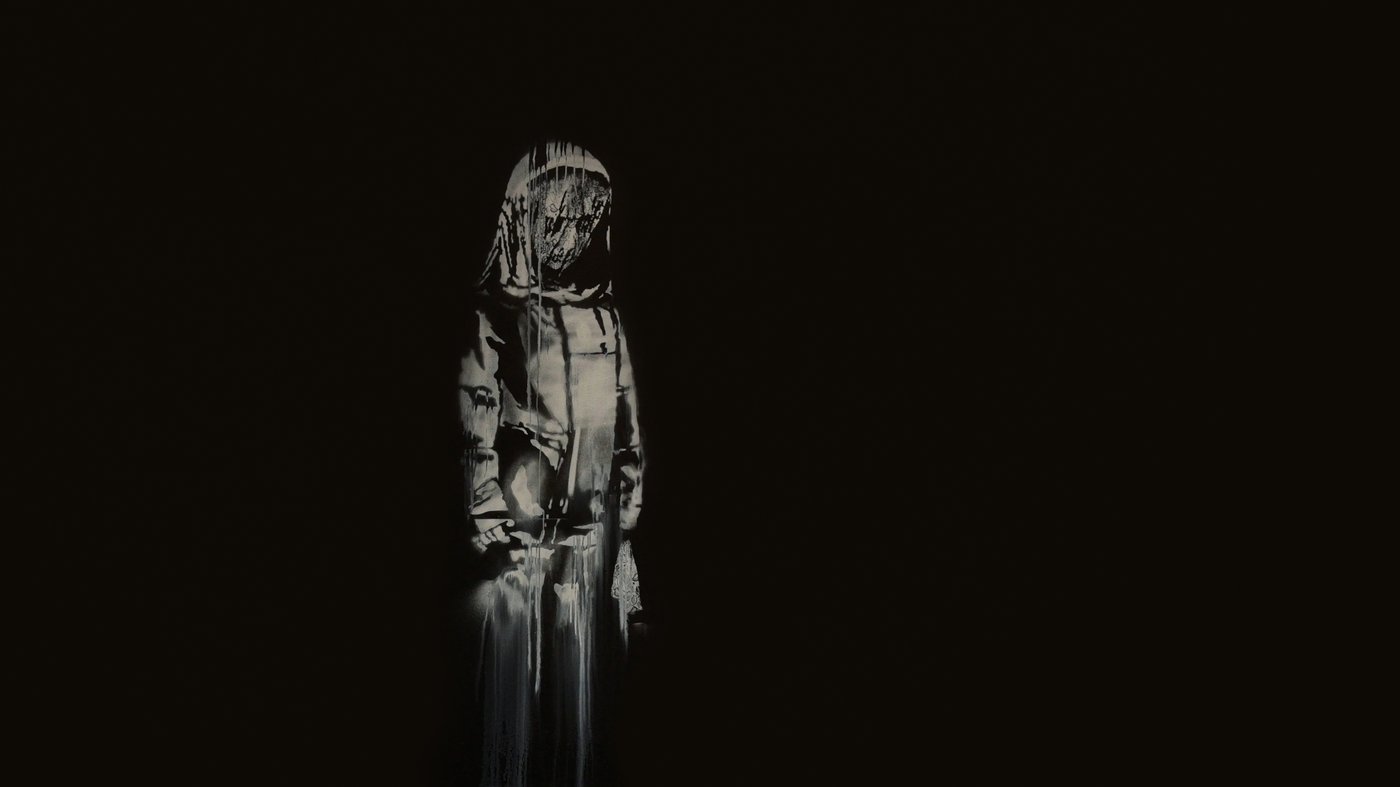 Banksy created this haunting stencil work in 2016 as a tribute to the victims of the Bataclan theater attack in Paris, where 90 people died during a terrorist assault in November 2015. The piece appeared on one of the emergency exit doors of the venue itself, a quiet memorial in the exact place where such horror unfolded. The ghostly figure of a young girl, veiled and mournful, stands against the darkness with an expression that captures both innocence lost and collective grief.