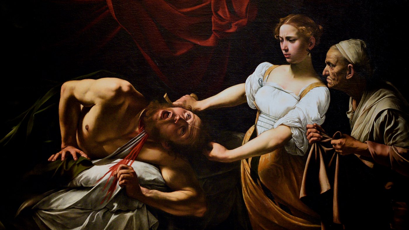 Caravaggio created this work around 1599, using his signature dramatic lighting technique called chiaroscuro, where bright figures emerge from dark backgrounds like actors on a stage. Notice how Judith's expression is one of determined concentration rather than rage or pleasure. She's doing what needs to be done to save her people. The artist was known for painting religious scenes with a gritty street-level realism, using everyday people as models rather than idealized figures. This made sacred stories feel immediate and real, though it sometimes shocked his audiences who expected something more polished and heroic.