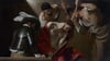This intense painting captures one of the most brutal moments from Christ's Passion, when Roman soldiers mockingly crowned him with thorns before the crucifixion. Caravaggio shows the scene with unflinching realism, positioning us uncomfortably close to the violence as three tormentors press the crown onto Christ's head. The light cuts dramatically through the darkness, illuminating Christ's pale, suffering body draped in red, while his torturers emerge from the shadows with disturbing everyday ordinariness.
