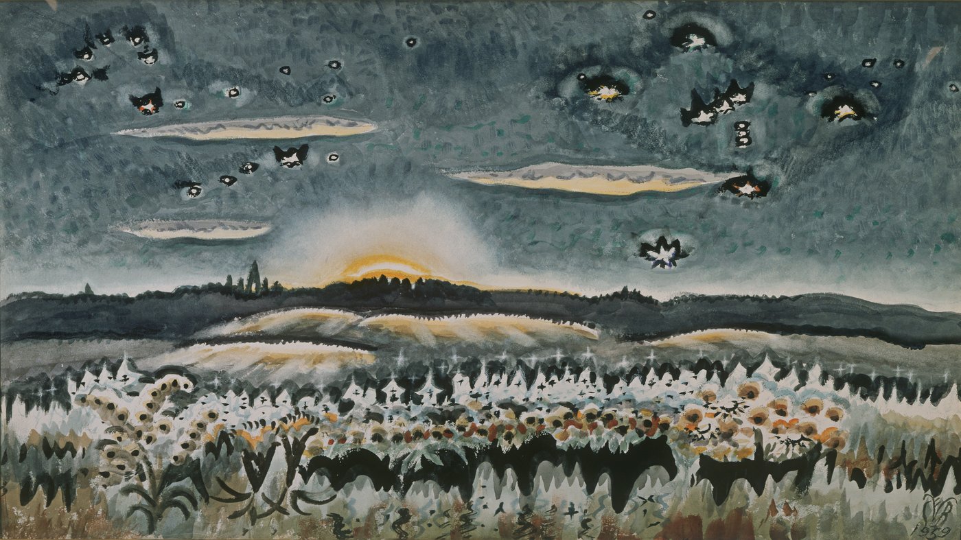 Burchfield was an American artist who spent much of his career documenting the changing seasons and weather patterns of the American Midwest. He had a unique ability to infuse his landscapes with emotion and atmosphere, often adding fantastical elements to represent the sounds and feelings of nature rather than just its appearance. Here, the rounded hills and rhythmic patterns in the fields create an almost musical quality, while the dark, turbulent sky suggests the cold intensity of winter twilight. It's the kind of painting that makes you feel the chill in the air and hear the wind rustling through bare branches.