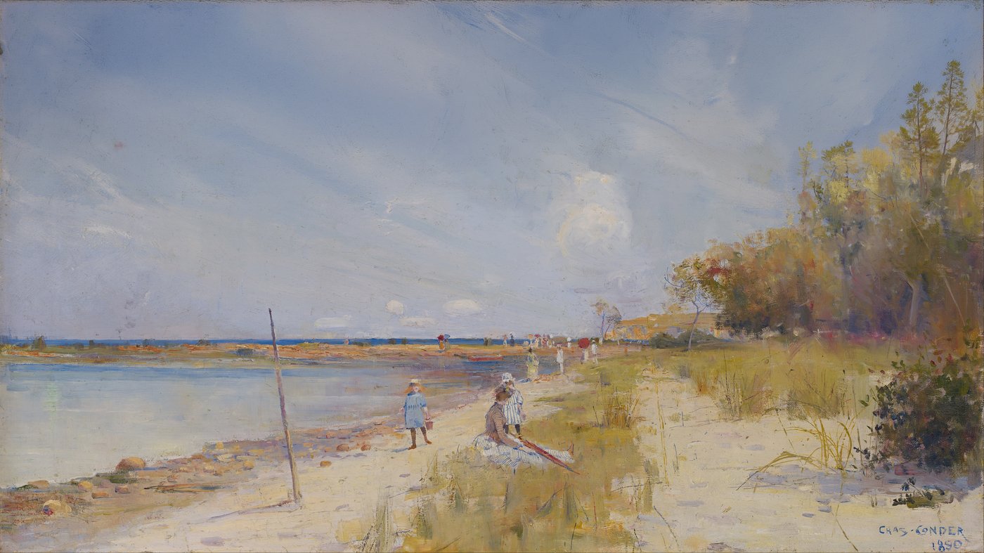 Conder was part of the Heidelberg School, often called Australia's Impressionist movement, and this painting shows why. Rather than crisp details, he's more interested in capturing light, atmosphere, and fleeting impressions of the landscape. The loose, sketchy brushwork and the way colors seem to shimmer and blend together create a sense of heat and stillness. It's a simple scene, really, just people enjoying a beach, but Conder transforms it into something poetic and memorable.