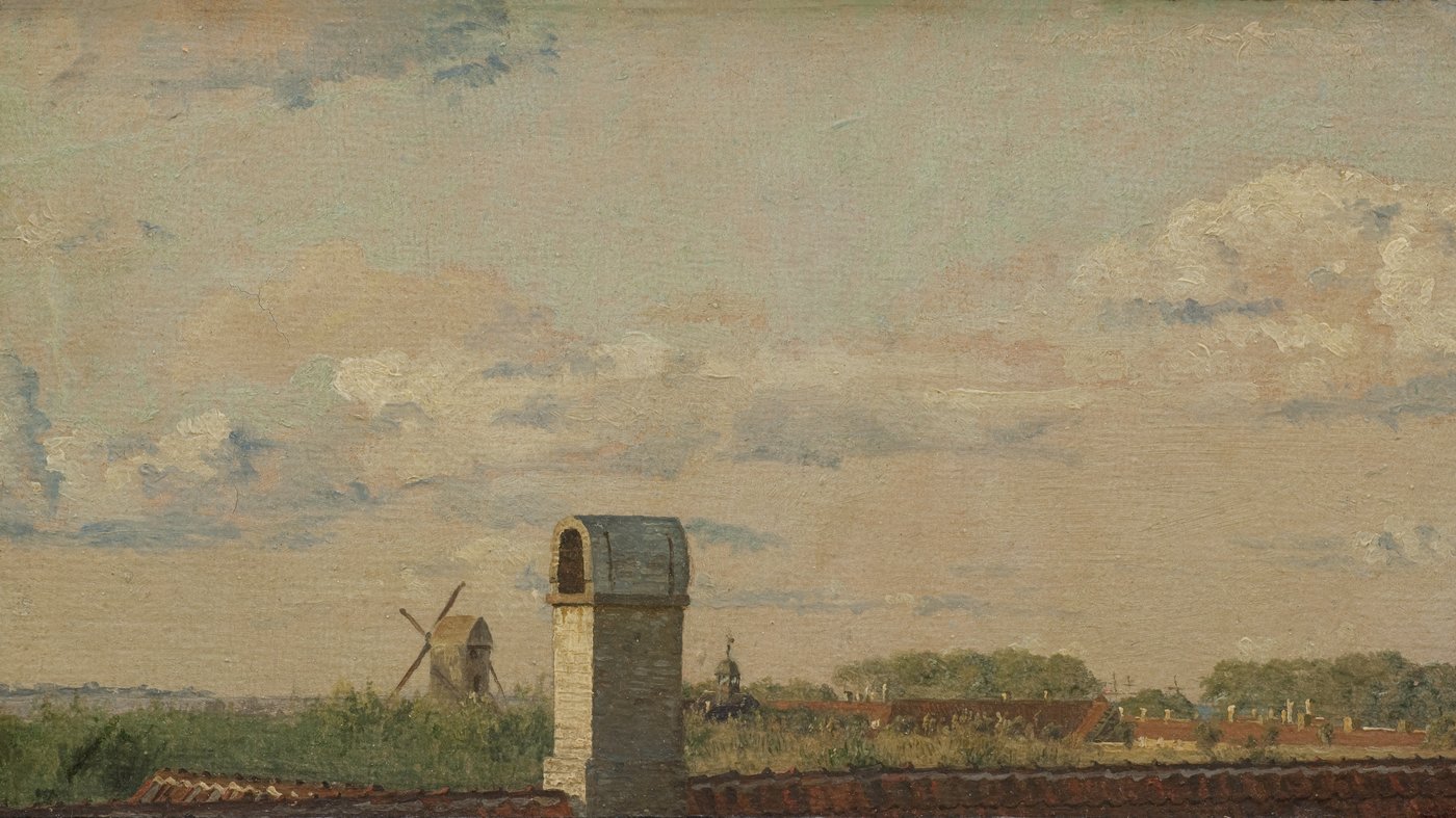 What makes this painting quietly compelling is its honesty and careful observation. The soft, hazy light of the Copenhagen sky takes up nearly half the canvas, rendered in delicate layers of cream and pale blue. Købke pays as much attention to the weathered chimney as he does to the distant buildings, treating each element with the same gentle respect. There's something deeply peaceful about how he transforms an ordinary moment into something worth preserving, reminding us that beauty doesn't always announce itself loudly. It's the kind of painting that rewards a second, slower look.