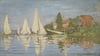 Claude Monet painted this serene scene of sailboats gliding across the Seine at Argenteuil, a popular riverside town just outside Paris where he lived during the 1870s. The white sails catch the light beautifully against the blue-gray water, their reflections shimmering below in loose, quick brushstrokes that capture the gentle movement of the river. On the right bank, you can see houses nestled among green trees, grounding this peaceful moment in everyday life rather than some distant, idealized landscape. This painting is a wonderful example of Impressionism in its early days, when Monet and his fellow artists were revolutionizing how paintings could look. Instead of carefully blending colors and creating smooth, polished surfaces, Monet applied his paint in visible dabs and strokes, letting colors sit next to each other to create a sense of light and atmosphere. Argenteuil was something of a playground for the Impressionists during this period, offering modern leisure activities like boating alongside picturesque natural scenery. Monet returned to this subject again and again, fascinated by how light transformed the water and sails at different times of day.