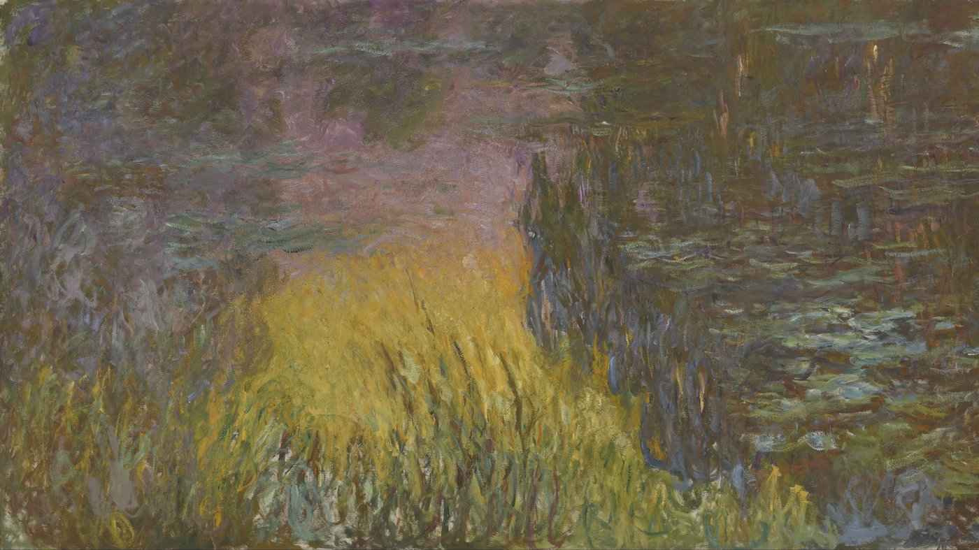Painted late in life by Claude Monet, this work belongs to his final explorations of the water lily pond at Giverny. At this stage, Monet was less focused on describing flowers or reflections and more interested in how light dissolves form. The setting sun becomes a feeling rather than a visible source, spreading warmth through color and texture. The painting invites stillness and attention, capturing a moment when time seems to pause as day turns gently into evening.