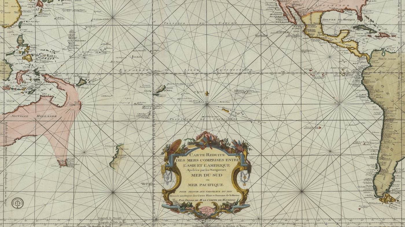 Carte réduite des mers coimprises entree l'Asie et l'Amérique apelées par les navigateurs mer du sud ou mer pacifique, 1776