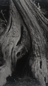 This dramatic close-up captures the weathered trunk of an ancient cypress tree at Point Lobos, California, photographed by Edward Weston, one of the masters of American modernist photography. The deep grooves and flowing lines of the bark create an almost abstract composition, transforming natural texture into something that feels both sculptural and intimate. Weston's sharp focus reveals every crack and contour, turning what might be a simple tree trunk into a study of form, light, and shadow.