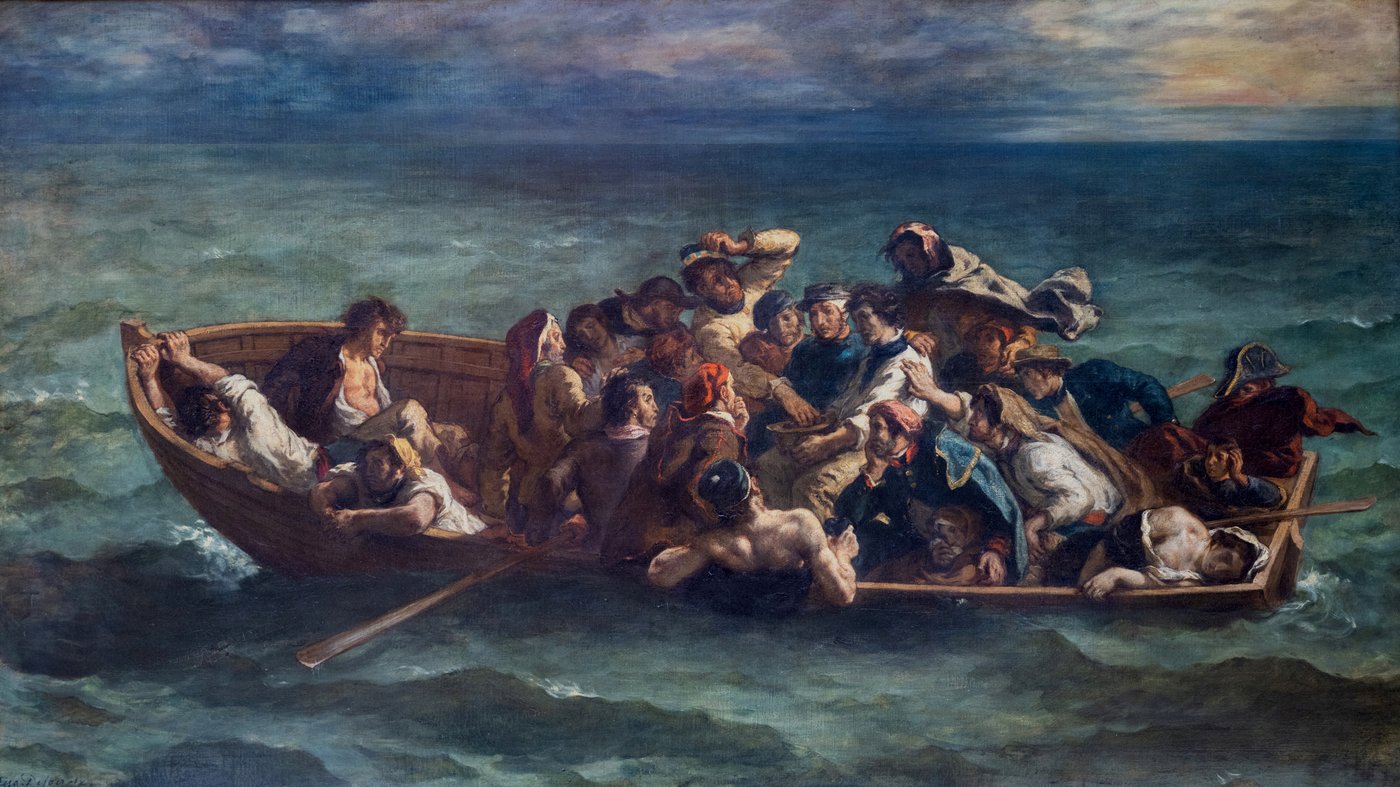 What makes this painting particularly haunting is the grim reality it depicts. In Byron's poem, these survivors eventually resort to cannibalism to stay alive, and Delacroix doesn't shy away from the horror of their situation. The boat sits dangerously low in the choppy water, clearly overburdened, while the threatening sky above offers little hope of rescue. Delacroix was known for choosing emotionally charged subjects like this, focusing on human suffering and survival with an unflinching eye that helped define the Romantic movement's break from more idealized classical art.