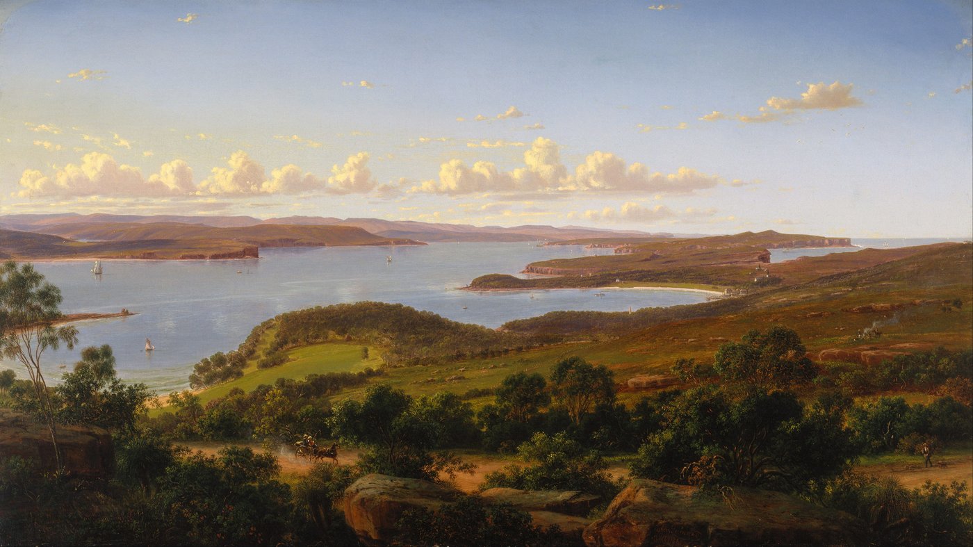 Eugene von Guérard’s Sydney Heads, painted in 1864, is a magnificent work that captures the sublime quality of the Australian coastline. As an Austrian trained artist, von Guérard applied a detailed, European Romantic sensibility to the rugged geology of the entrance to Sydney Harbour.