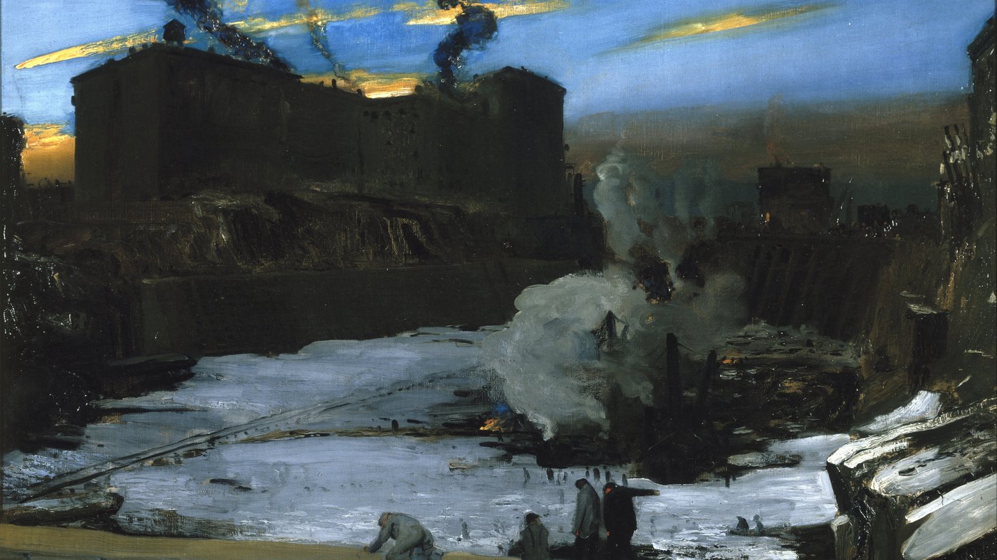 The excavation for Pennsylvania Station was one of the largest urban undertakings of its time, cutting deep into the fabric of New York. Bellows captures the magnitude of this transformation, focusing not on the future building but on the raw, exposed earth that came before it. The painting reflects the tension between ambition and disruption, and how the drive to modernize often leaves behind landscapes that feel temporarily wild. Even in the middle of the city, the ground seems ancient again, waiting for its next shape.