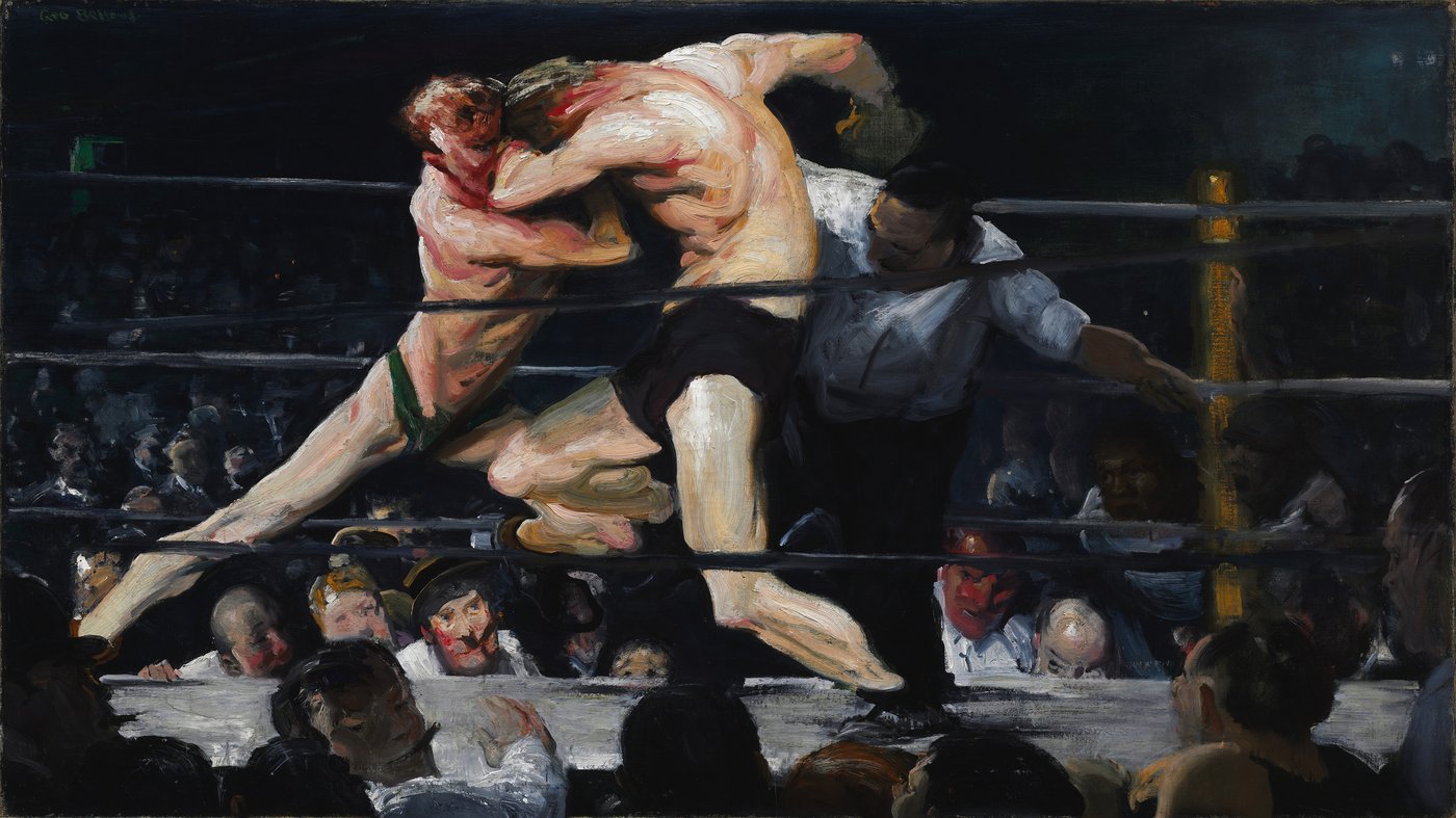 Bellows painted scenes like this after spending time in New York’s athletic clubs, where brutal, fast matches drew working class audiences. He was fascinated by the energy of these places and by how they revealed both the thrill and the cost of physical competition. The painting doesn’t choose a side. It simply shows the power, risk, and closeness of the moment, letting the viewer feel the heat and noise of the ring and the uneasy mix of admiration and discomfort that comes with watching two people collide.