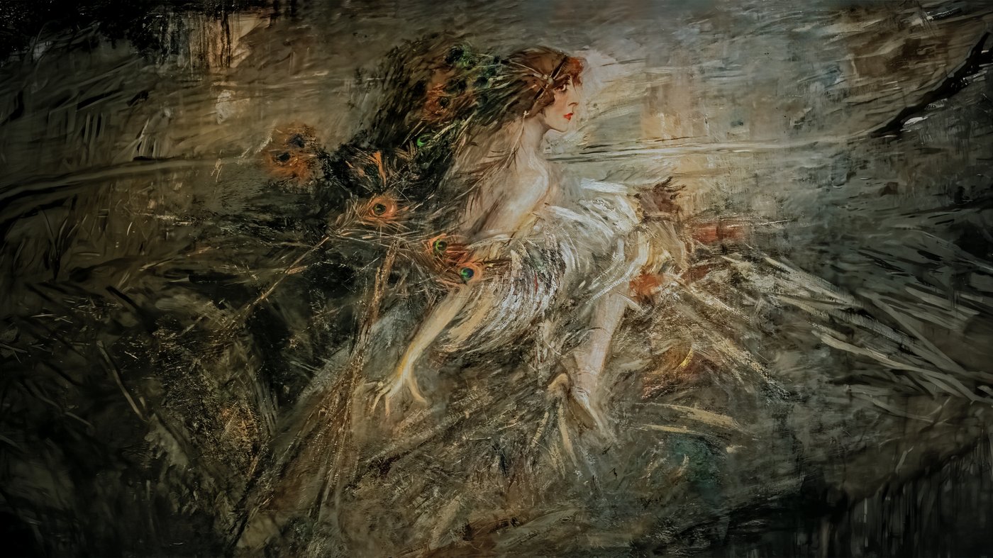 Boldini's signature style transforms the canvas into pure energy. His rapid, sweeping brushstrokes blur the boundaries between figure and background, making Casati appear as though she's dissolving into her own mythology. This technique, influenced by Impressionism but pushed to more dynamic extremes, became hugely popular among high society patrons who wanted portraits that felt alive rather than stiffly formal. The Marquise eventually spent her entire fortune on her extravagant lifestyle and art collection, dying in poverty in London with only her taxidermied Pekinese dogs for company, but images like this one preserve the magnetic intensity she