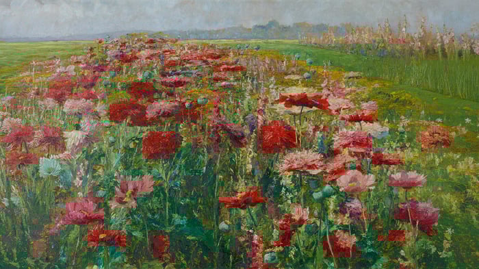 This sensual painting by Gustave Courbet caused quite a scandal when it was created in 1866. Commissioned by a wealthy Turkish diplomat for his private collection, the work depicts two women in an intimate embrace on rumpled white sheets. The scene includes luxurious details like scattered jewelry, a small table with a decorative vase of flowers, and an overturned pearl necklace, suggesting the aftermath of passionate indulgence. Courbet painted it during a period when he was exploring increasingly bold and controversial subjects.