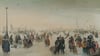 This delightful winter scene captures everyday life in the Netherlands during the early 17th century, when frozen rivers and canals transformed into bustling social hubs. Hendrick Avercamp, who was deaf and mute, had a unique gift for observing people, and he's packed this icy landscape with dozens of figures from all walks of life. You'll spot elegantly dressed townspeople, working folks, children playing, people pulling sleds, and even a few dogs joining the fun. The muted palette of grays, browns, and touches of red perfectly captures that special light of a cold winter day.