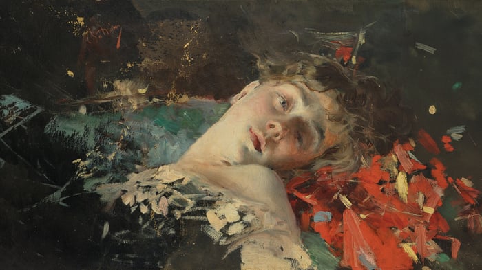 Rousseau was a self-taught artist who worked as a toll collector in Paris and painted in his spare time. His naive, simplified style was often mocked during his lifetime, but this painting has become one of his most celebrated works. He claimed the scene depicted "a wandering negress playing the mandolin, with a vase of drinking water beside her," though others have suggested it might represent a moment from a dream or a poetic vision rather than anything meant to be realistic.