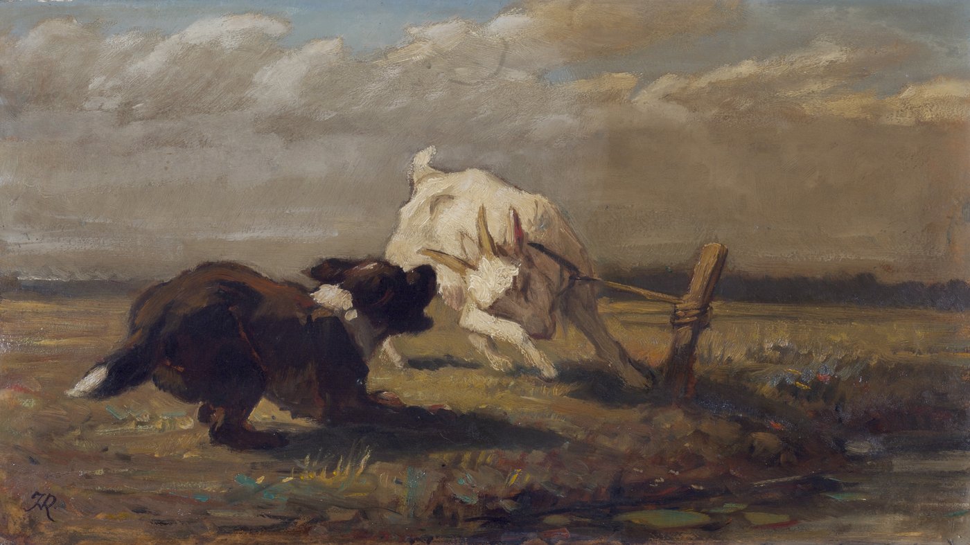 Henriëtte Ronner Knip approaches the scene with directness rather than drama. Known for her close observation of animals, she does not turn this encounter into a moral lesson or spectacle. Instead, she shows a brief clash of will and energy, shaped by fear, curiosity, and reaction. The painting feels immediate and physical, reminding us that animal life includes tension as well as calm. It captures a fleeting moment where control slips, and instinct briefly fills the space between restraint and release.