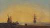 Evening settles softly over the harbor as the sea grows calm and reflective. A warm golden sky spreads across the horizon, dissolving details into silhouettes. Ships rest at anchor, their masts rising quietly from the water, while small figures move along the shore and pier, unhurried and absorbed in the fading light. The scene feels suspended between day and night, activity and rest. Painted by Ivan Aivazovsky, this work shows his gentler approach to maritime life. Rather than drama or danger, he focuses on atmosphere and mood, using light to shape the entire composition. The sea becomes a mirror for the sky, and human presence feels modest and peaceful. The painting captures a moment of transition, where time slows and the vastness of the sea feels calm, welcoming, and quietly infinite.