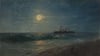 This atmospheric seascape captures a steamship passing by in the silvery light of a full moon, painted by Ivan Aivazovsky, one of history's most celebrated marine artists. The Russian-Armenian painter was obsessed with the sea, creating over 6,000 seascapes during his lifetime. He had an remarkable ability to paint water and light from memory, rarely working from sketches, which gave his ocean scenes an almost dreamlike quality.