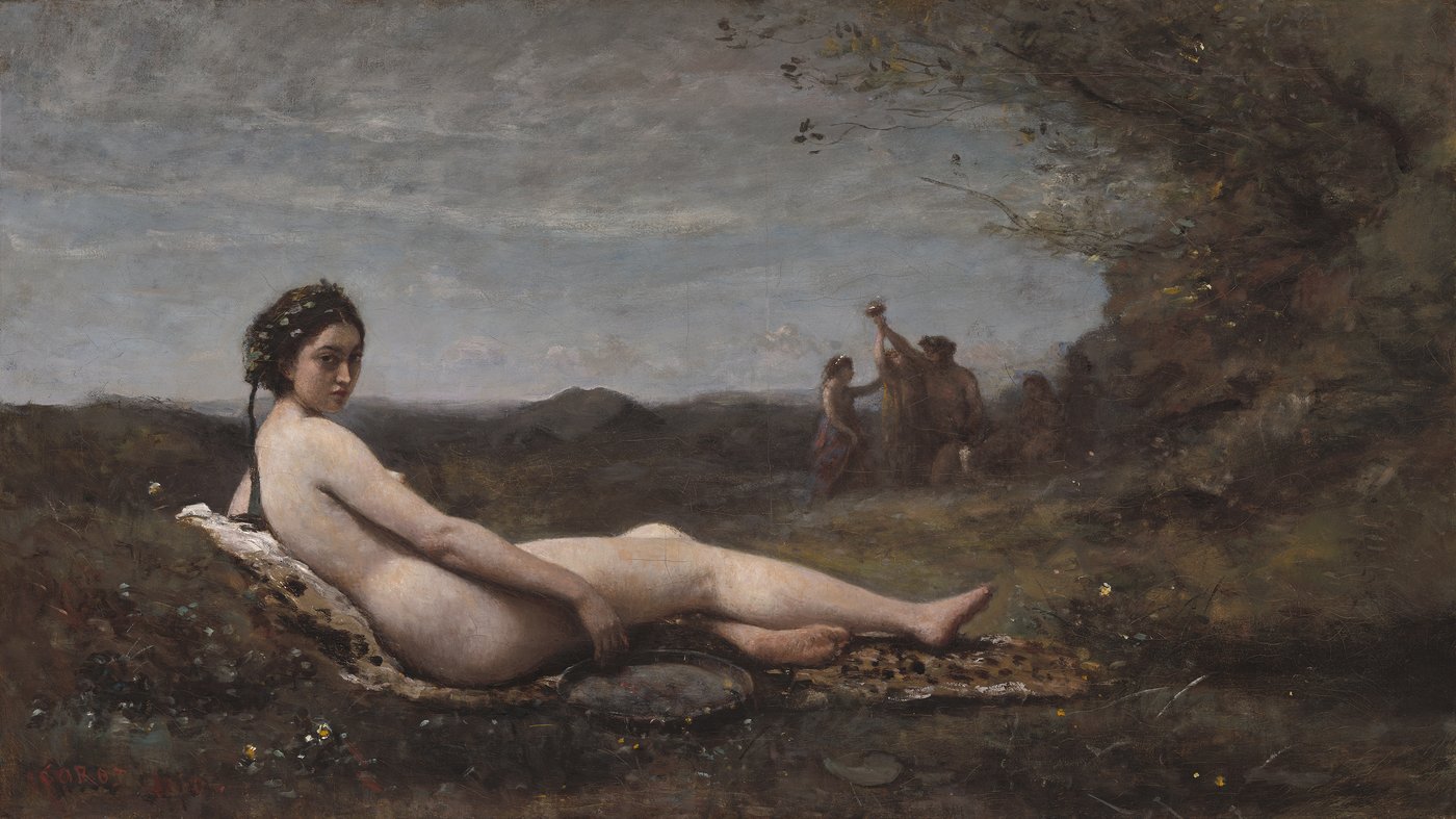 This painting, The Repose, was initially created by Corot around 1860 and later reworked between 1865 and 1870. It is a harmonious blend of Corot's two great passions: the nude figure and the lyrical landscape.