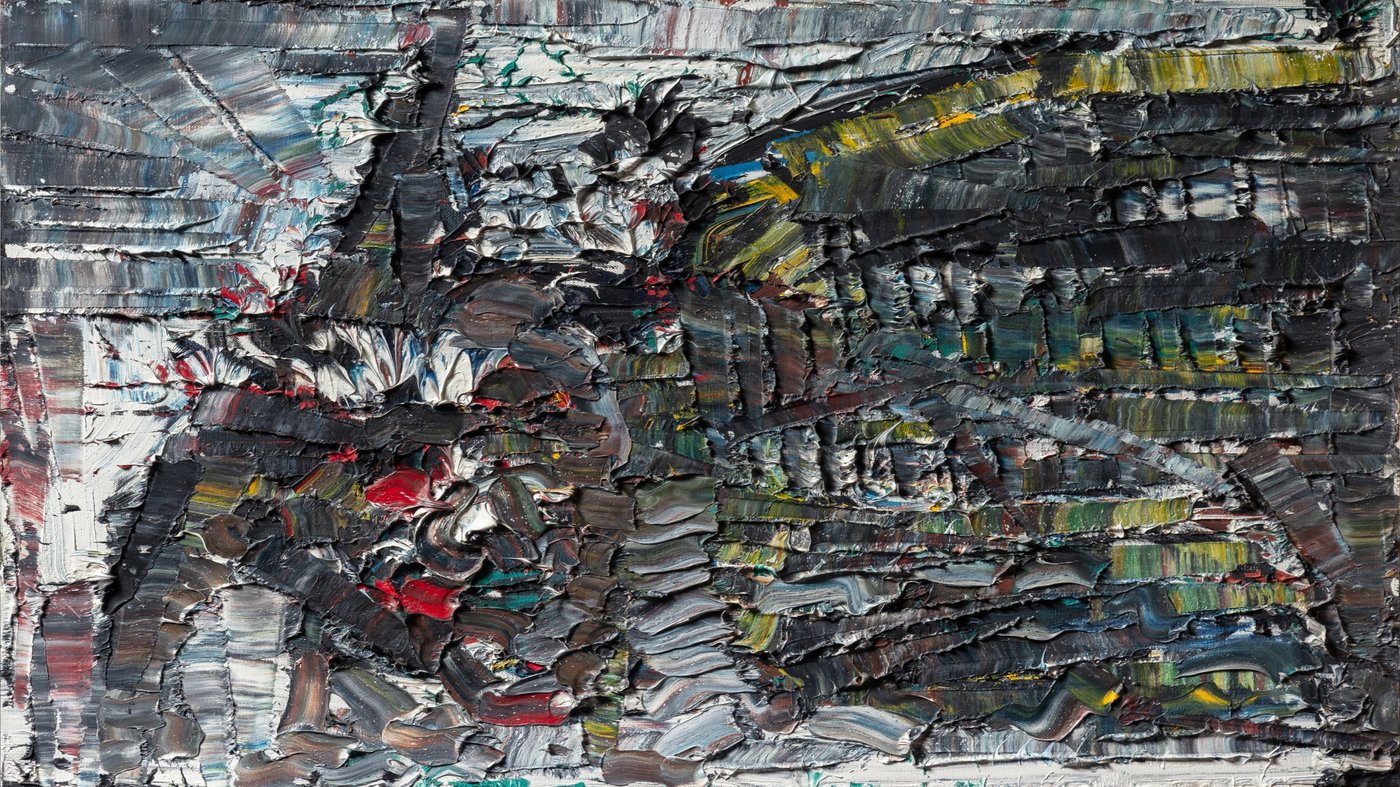 Jean-Paul Riopelle's "Hibou-Circus" (mid-1950s) is a monumental triptych and a dynamic burst of color that exemplifies the Canadian artist's style of Lyrical Abstraction.