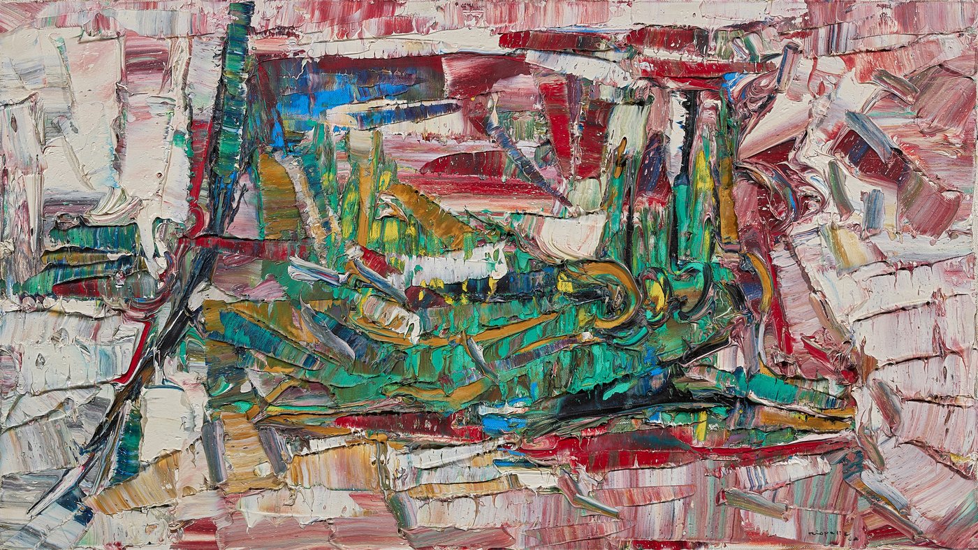Jean-Paul Riopelle’s "Vérone" (1955) is a powerful, vibrant example of the Canadian artist’s signature Abstract Expressionist style, often called Lyrical Abstraction.