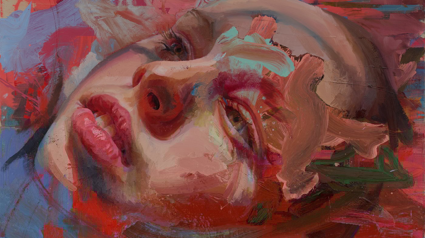 Saville's technique here is deliberately messy and raw, with thick paint applied in sweeping gestures that reveal the physical act of painting itself. The inverted perspective adds to the sense of disorientation and vulnerability, making us look at the human face in an unfamiliar way. Rather than presenting an idealized portrait, she shows us flesh as something heavy, complex, and constantly changing. There's something both unsettling and honest about how she captures the body, reminding us that we're all just made of paint and muscle and skin.