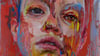 This close-up portrait pulls you right into the raw emotional intensity of the subject's face, painted with thick, expressive brushstrokes that seem to layer skin and paint into one. British artist Jenny Saville is known for her unflinching approach to depicting the human body, often working on a massive scale that forces viewers to confront flesh, vulnerability, and beauty in ways that can feel uncomfortable and captivating at the same time. The vibrant streaks of yellow, blue, and red don't just represent light and shadow but seem to suggest something breaking through or breaking down.