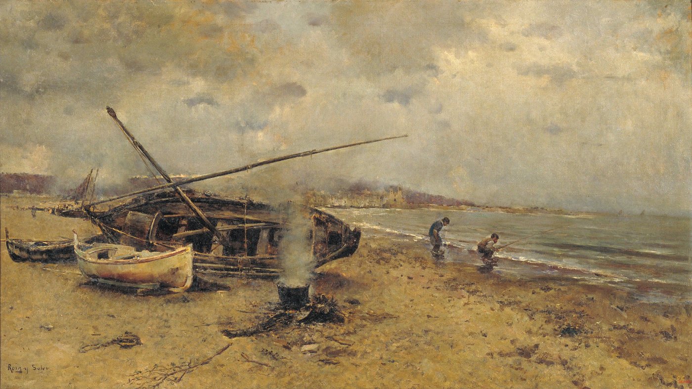 Painted by Joan Roig i Soler, this study reflects his close observation of coastal life in late 19th century Catalonia. Rather than presenting the seaside as a place of leisure, Roig i Soler focuses on labor, weather, and routine. His loose brushwork and muted tones give the scene a sense of immediacy, as if caught between moments. The painting feels grounded and honest, showing the coast as a working environment shaped by effort, patience, and the steady presence of the sea.