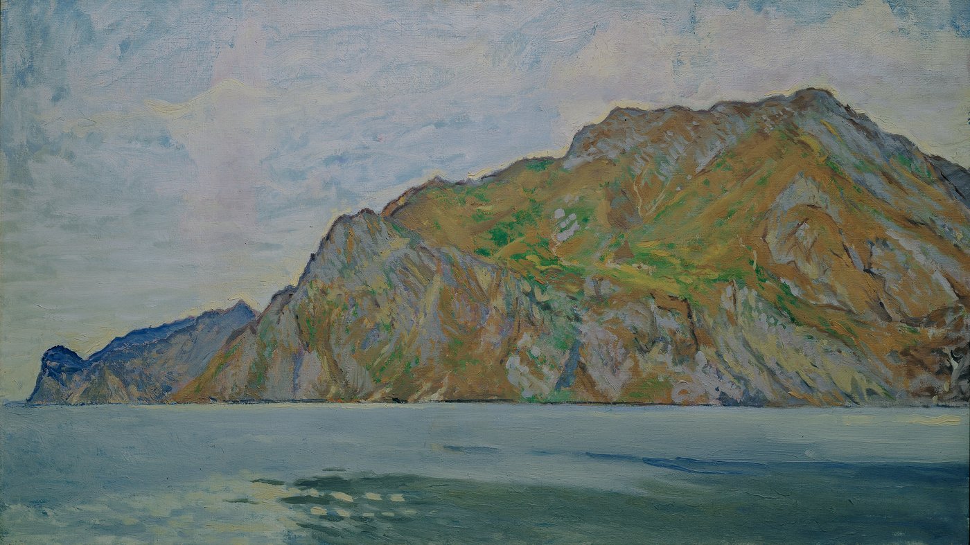 This serene landscape captures the dramatic cliffs rising from Lake Garda, viewed from the small town of Torbole on Italy's largest lake. Koloman Moser, a founding member of the Vienna Secession movement, painted this during his travels to the region, where the interplay of light on water and mountains clearly caught his attention. The painting shows his skill at simplifying natural forms into broad areas of color while still maintaining the essential character of the place.