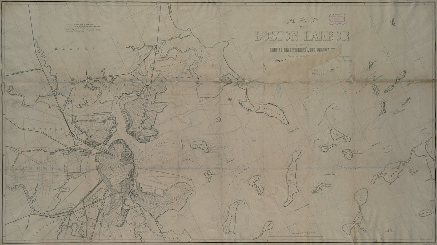Map of Boston Harbor showing commissioners lines, 1852