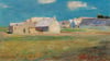 Here's a surprisingly peaceful landscape from Odilon Redon, an artist better known for his dark, dreamlike visions of floating eyeballs and mysterious creatures. This sunlit scene of a Breton village shows a completely different side of his artistic personality. The simple whitewashed houses sit contentedly under a bright blue sky, their solid forms casting gentle shadows across the golden field that stretches out before them.