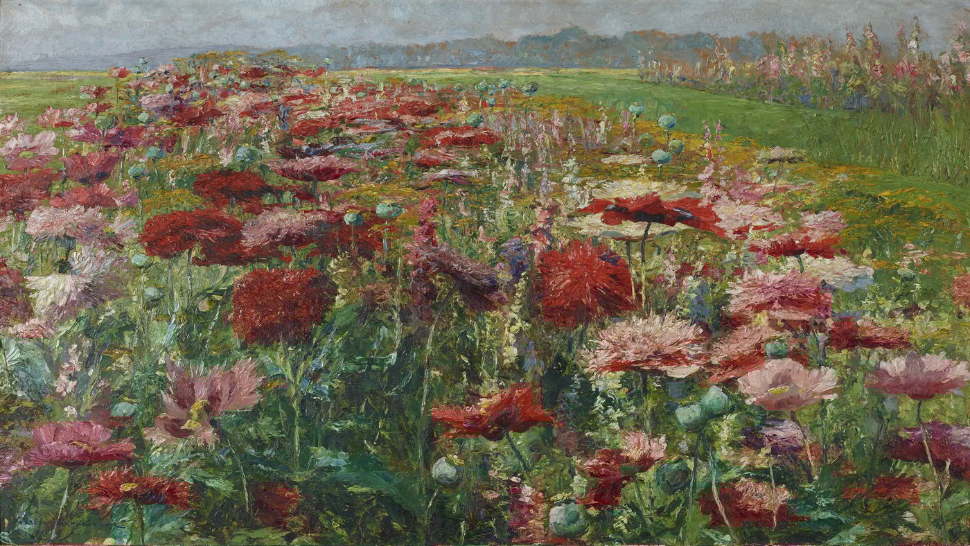 Wisinger-Florian treats the poppies not as delicate details but as a living mass shaped by wind, light, and season. Her thick brushstrokes give the flowers weight and presence, emphasizing their brief moment of fullness. The distant fields and soft sky provide calm balance, reminding us that this vivid display is part of a larger, ongoing cycle. The painting feels joyful yet fleeting, capturing the intensity of summer growth before it inevitably fades.