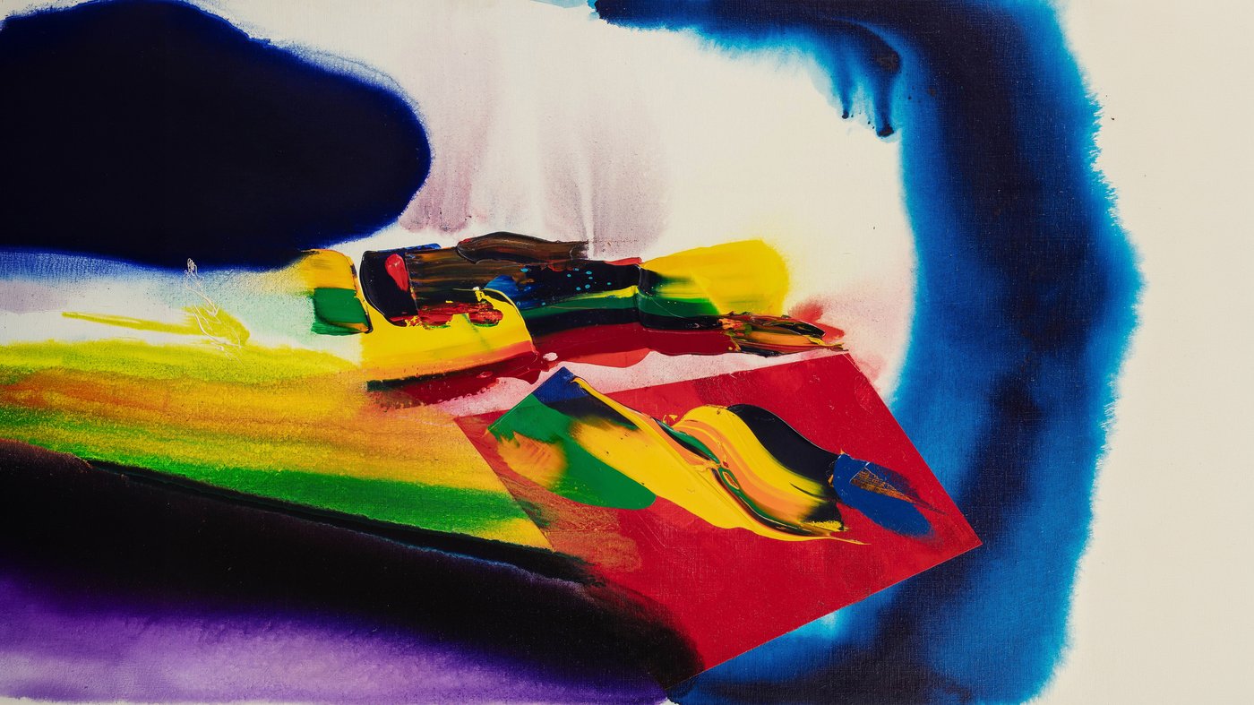 This vivid abstract painting bursts with energy through its bold use of primary colors and fluid, sweeping forms. Paul Jenkins was known for his distinctive technique of pouring and tilting thinned paint across the canvas, allowing gravity and chance to play a role in creating these dynamic compositions. The result is a sense of movement and spontaneity, as if we're watching colors collide and blend in real time.