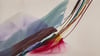 This watercolor explodes with the fluid, spontaneous energy that Paul Jenkins became known for in the mid-20th century. Working within the Abstract Expressionist movement, Jenkins developed a unique technique of pouring and tilting diluted paint on canvas, allowing colors to merge and flow into one another organically. The result here is a dynamic composition where cool blues and greens collide with warm reds and earth tones, while thin lines streak upward like the path of a falcon in flight.