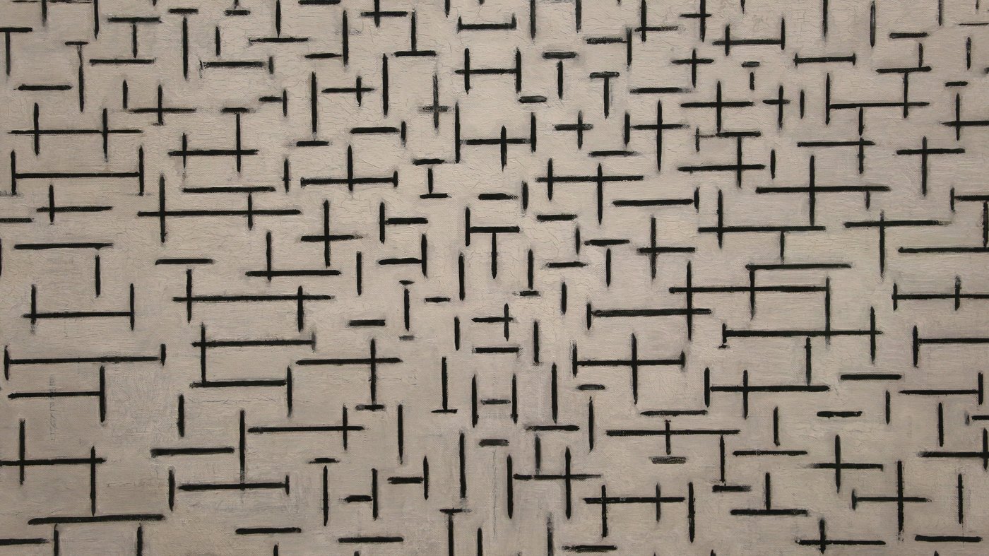 What makes this particularly interesting is seeing Mondrian in a more experimental phase. Rather than the perfectly balanced grids he became known for, these lines feel almost playful, like he's testing different possibilities and seeing what happens when they overlap and cluster together. It's a reminder that even artists associated with strict geometric order had to work through messy, exploratory stages to get there. The result is surprisingly dynamic for something made with such simple elements.