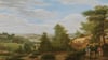 This sweeping landscape captures the gentle countryside around Montmorency, just north of Paris, where rolling hills and farmland stretch toward distant horizons. Dutch artist Pieter Rudolph Kleijn painted this view in the 19th century, bringing his homeland's tradition of detailed landscape painting to the French countryside. Notice how the composition draws your eye from the sandy path in the foreground, past the travelers pausing for conversation, and out across the patchwork of fields that seem to go on forever.