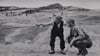 This powerful photograph captures a moment during the Allied invasion of Sicily in 1943, shot by legendary war photographer Robert Capa. Two figures stand in a dusty, barren landscape: a local Sicilian man gesturing across the terrain and a crouching Allied soldier, likely discussing directions or positions during the campaign. The image reveals the human side of war, showing how soldiers depended on local knowledge and cooperation as they moved through unfamiliar territory. The rocky hills and scattered livestock in the background emphasize the rural setting where much of this historic invasion unfolded. Robert Capa, born André Friedmann in Hungary, became one of the most celebrated war photographers of the 20th century. He covered five major conflicts, including the Spanish Civil War and D-Day at Omaha Beach. His philosophy was simple but dangerous: "If your pictures aren't good enough, you're not close enough." This approach gave his work an intimate, immediate quality that brought the reality of war into people's homes. This particular image from Sicily shows his talent for finding quiet, human moments amid the chaos of military operations.