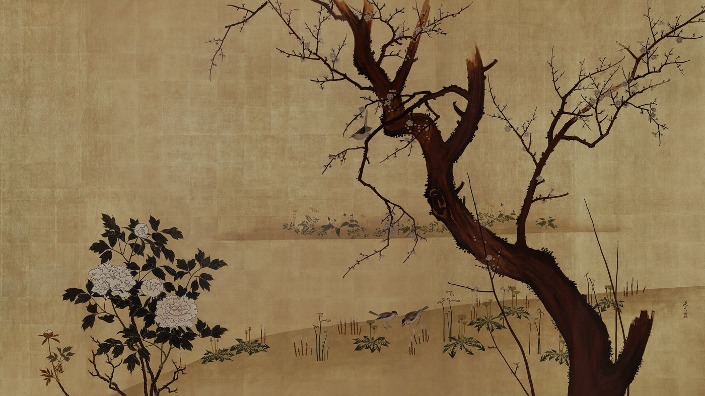 Created by Shibata Zeshine, this work follows the traditional East Asian painting style where empty space is just as important as what's actually painted. The artist uses varying tones of ink on silk to create depth and atmosphere, with the pale background evoking morning mist or the soft light of early spring. Rather than showing spring in full bloom, this painting captures that transitional moment when nature is just beginning to stir, making it feel contemplative and peaceful. The twisted tree, despite being bare, radiates a quiet strength that promises renewal to come.