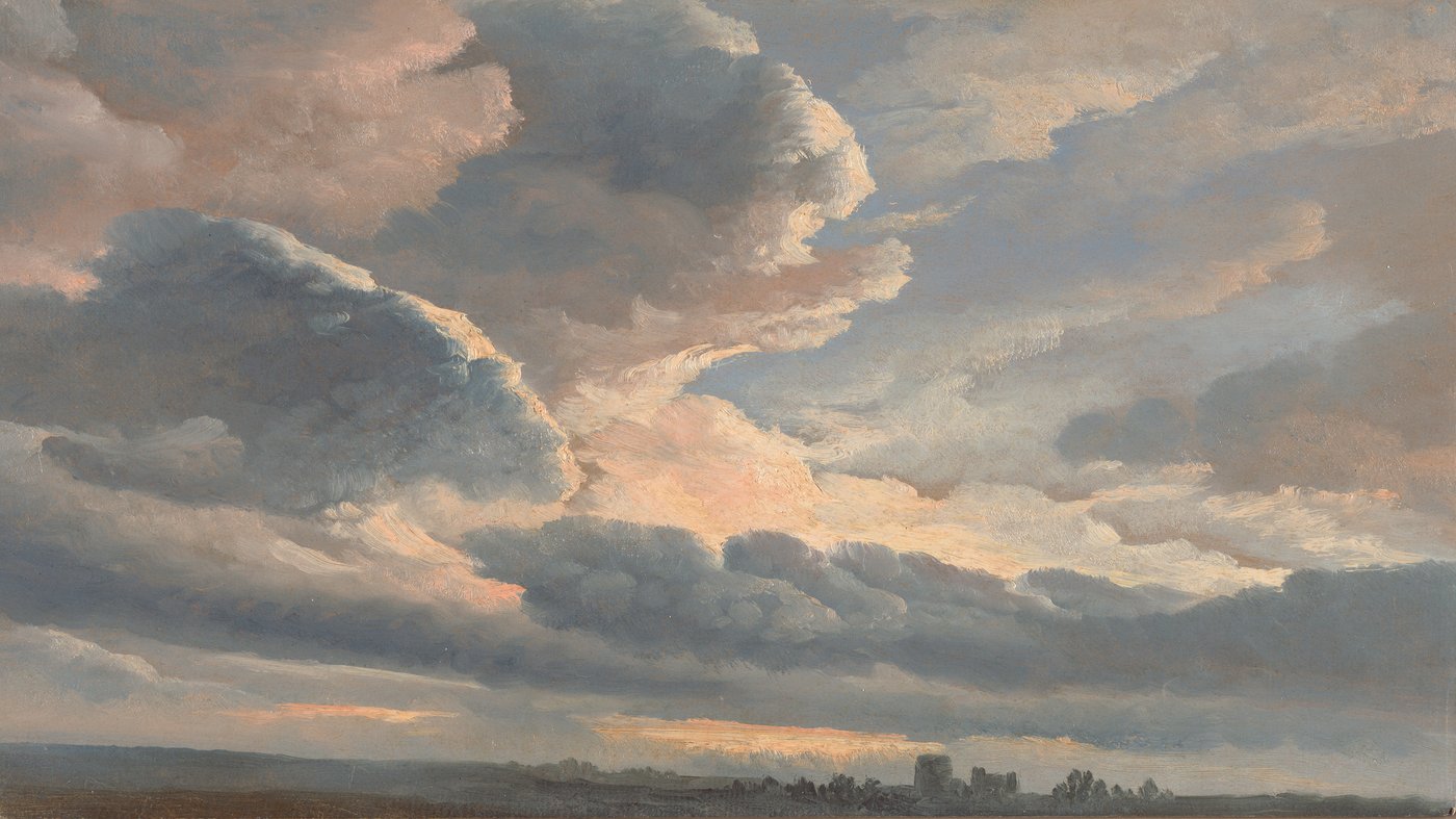 The focus here is entirely on the vast sky and the shifting clouds, making the atmosphere the true subject of the work. This simple study is historically important because it helped inspire later landscape painters to leave their studios and focus on capturing the intense, truthful light of the real world.