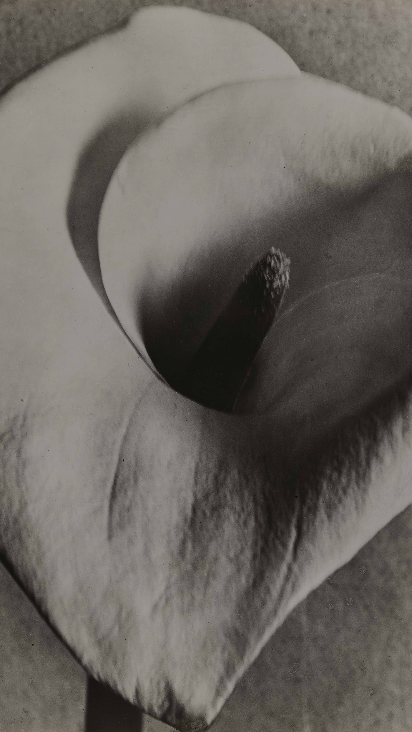This intimate close-up of a calla lily transforms a simple flower into something almost sculptural. Tina Modotti, an Italian photographer working in Mexico during the 1920s, had a remarkable eye for finding abstract beauty in everyday subjects. By zooming in so closely that we see only curves, shadows, and soft gradations of light, she turns the lily into a study of form itself. The velvety texture and gentle folds could almost be mistaken for fabric or even human skin.