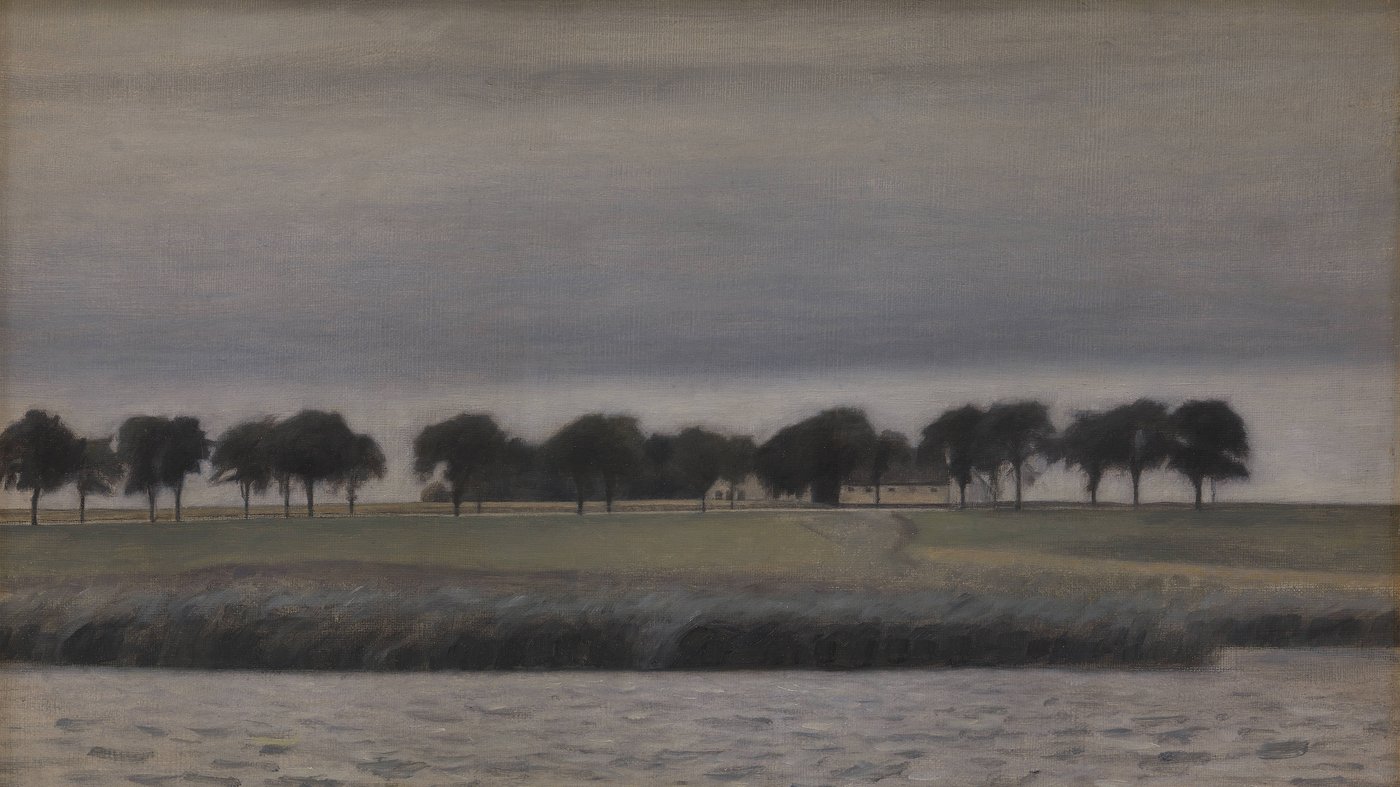 As a study, this work reveals Hammershøi's process of observation and composition before committing to a final painting. The trees form an almost rhythmic pattern across the middle ground, while the heavy clouds suggest an approaching or passing rain shower. There's a contemplative stillness to the scene that's typical of Hammershøi's work, inviting viewers to pause and notice the subtle beauty in an ordinary lakeside view on what might have been just another gray day.