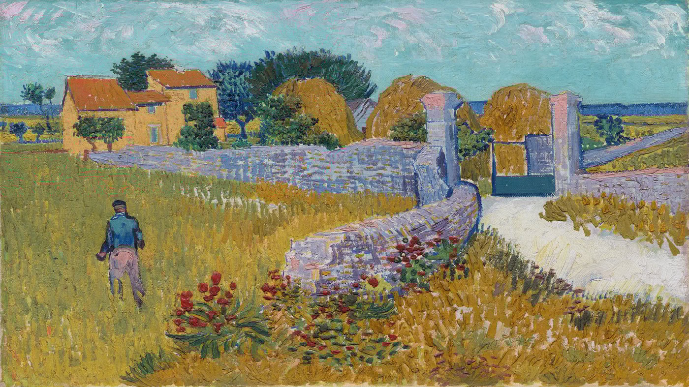 What makes this work particularly captivating is how Van Gogh transforms an ordinary farmhouse into something almost magical through his bold use of color and thick, expressive paint application. The vibrant patches of red and orange flowers along the path seem to dance, while the wheat field shimmers in varied shades of gold and yellow. This was painted during Van Gogh's time in Arles, when he was at his most productive and optimistic, finding endless inspiration in the Provençal landscape that he described in his letters as paradise.