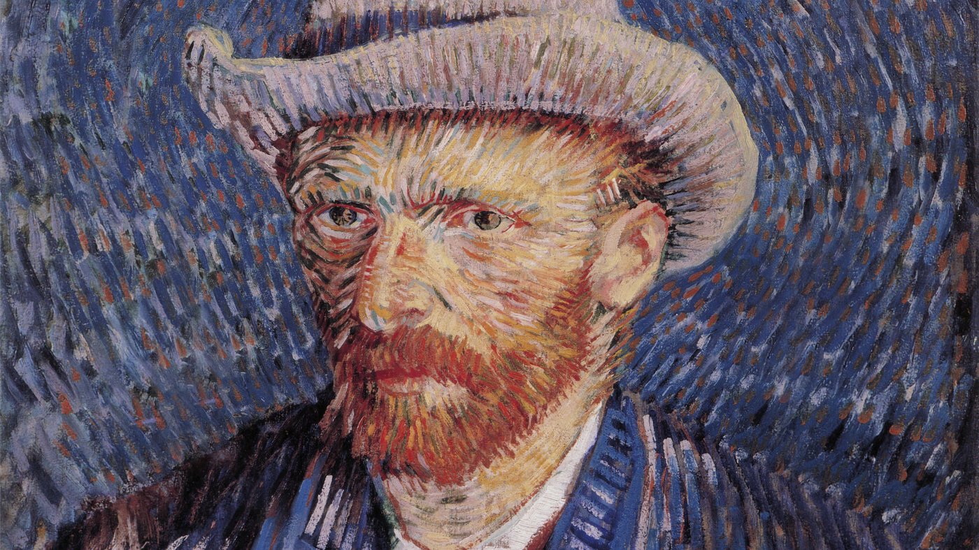 Vincent van Gogh painted this self-portrait during his time in Paris, wearing a grey felt hat that gives him an almost fashionable appearance despite his troubled circumstances. Those distinctive swirling brushstrokes in the background weren't just decorative, they were part of van Gogh's unique way of seeing the world, turning even empty space into something alive and moving. He painted dozens of self-portraits throughout his life, partly because he couldn't afford to pay models, but also because he was genuinely fascinated with capturing his own changing moods and appearance.