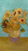 Vincent van Gogh painted several versions of sunflowers during his time in the south of France, and this particular work captures the flowers at different stages of life, from full bloom to wilting. The thick, energetic brushstrokes are unmistakably Van Gogh's style, building up layers of paint that make the petals seem to leap off the canvas. Against that gorgeous turquoise background, the golden yellows create a vibrant contrast that's almost impossible to look away from. He painted these sunflowers to decorate his house in Arles, hoping to impress his friend and fellow artist Paul Gauguin, who was coming to visit.