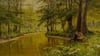 This peaceful scene captures the Spreewald, a distinctive wetland region in eastern Germany known for its network of waterways winding through dense forest. Walter Moras painted this summer landscape with careful attention to the way light filters through the canopy of trees, creating a golden-green glow that reflects off the still water below. The artist worked in the tradition of German landscape painting, where depicting the natural beauty of the homeland held special significance during the late 19th and early 20th centuries.