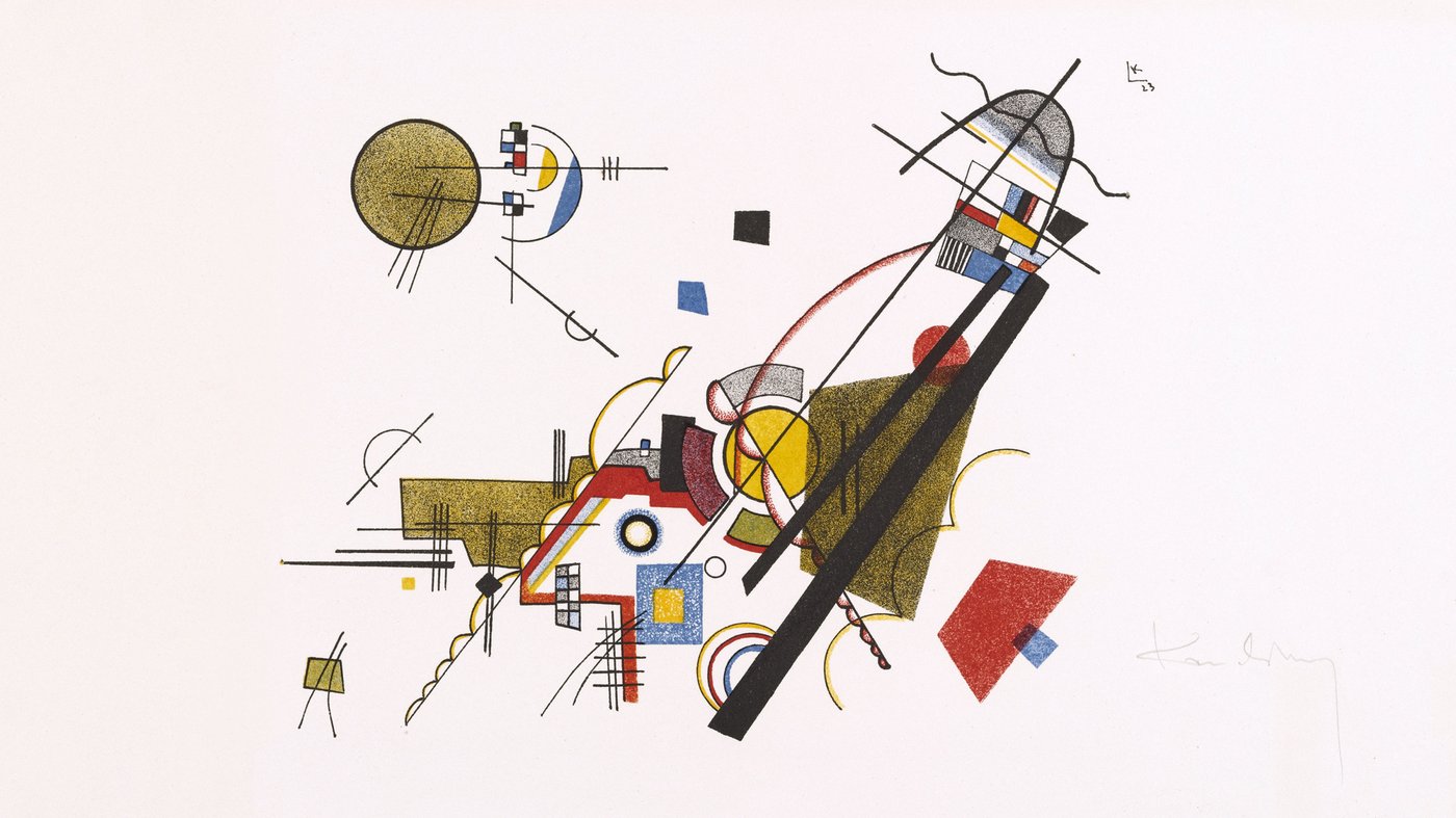 Wassily Kandinsky’s Joyous Ascent is a late work from the 1930s that clearly illustrates his search for universal harmony through abstract geometry.
