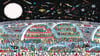 Welcome to an incredibly detailed vision of life on the moon, brought to you in the distinctive "Where's Waldo?" style of intricate, crowded scenes. This bustling lunar colony shows hundreds of characters living their daily lives under massive protective domes on the moon's surface, with a star-filled sky above populated by rockets, satellites, and space debris. Every corner reveals something new: people shopping, working, exercising, and going about their business as if this off-world settlement were just another busy city.