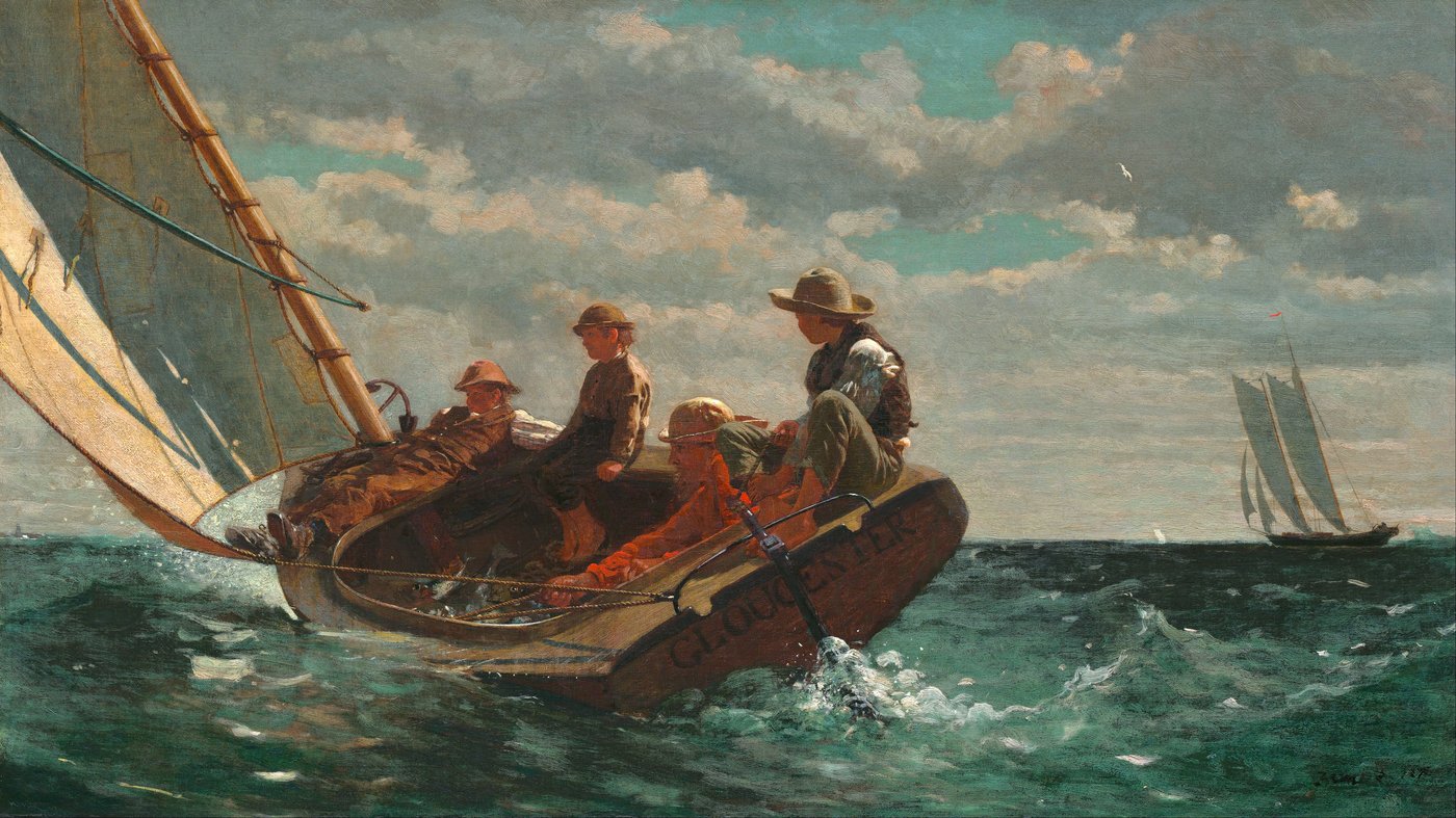 This work is an ode to youth, freedom, and self-reliance. The composition is dynamic, emphasizing the speed and skill needed to manage the boat, which symbolizes mastery over the elements. Homer avoids any hint of danger, unlike his later works, instead focusing on the exhilarating energy of the moment and the harmonious cooperation among the figures. It represents an idealized return to peace and simple pleasures in the years following the war, becoming one of the most enduring symbols of American nautical painting.